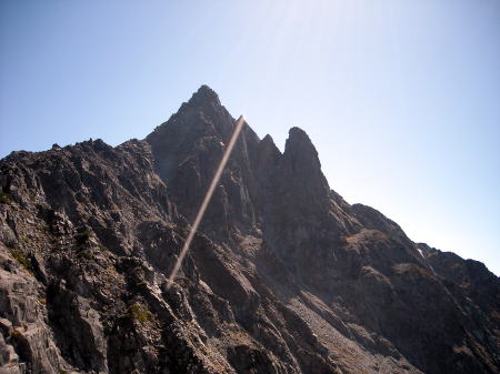 だんだんと間近に迫ってくる槍ヶ岳。肉眼では頂上に人がいるのを確認できます。