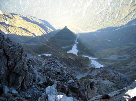 そういえば、槍の頂上直下にも少しだけ雪が残っていました。