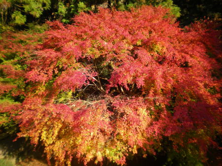 幕山公園下の駐車場の見事に紅葉したモミジ。伊豆の紅葉も今が見ごろです。