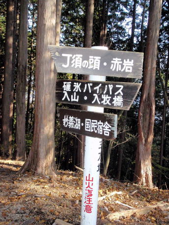 稜線上の三方境に午後2時半に到着。あとは国民宿舎の車まで戻るだけです。