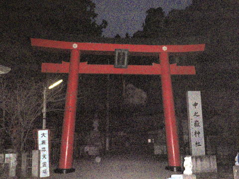 翌日は表妙義山の縦走です。朝5時半過ぎに出発。中の岳神社の鳥居を暗いうちにくぐってお参りしてから出発です。