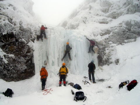 ナイアガラの滝は少し小ぶりでした。この上の氷暴も細いですが登れるようです。1人3本登って、昼前には混んできたこともあり終了しました。