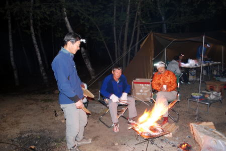 おなかも落ち着いてくると、定番の焚火が始まりました。