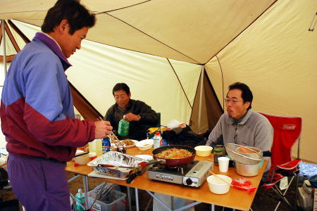 月曜日の居残りメンバー。朝から霧雨が降っていたので、昨日の残りを使って焼きそば&焼き肉の朝ごはんです。豪華!