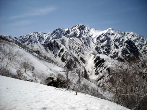 小遠見への登りから見た五竜岳。右の白岳から左に延びる尾根が西遠見、大遠見の遠見尾根。