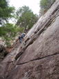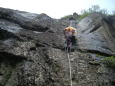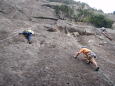 中級&エキスパートは、前日の雨で水の流れる岩場のなか、日が最初にあたって乾きのいい「草溝ルート」をかわきりに、2パーティに分かれて、それぞれのレベルにあったルートを登って終了しました。