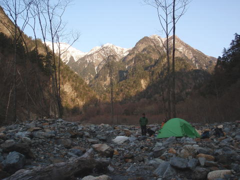 熊穴沢は最近つけられた赤布が目印で、薄いトレースながら迷うことなく3時間で河原に到着。まだ快晴の空ですが、翌朝は雨の中の下山になりました。