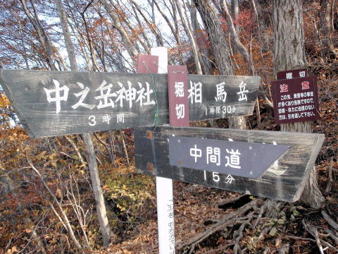 「茨(ばら)尾根」の中間点「堀切」で、福田ガイドは車を白雲山(相馬岳」のふもと妙義神社に移動する役目と買出しのため下山します。